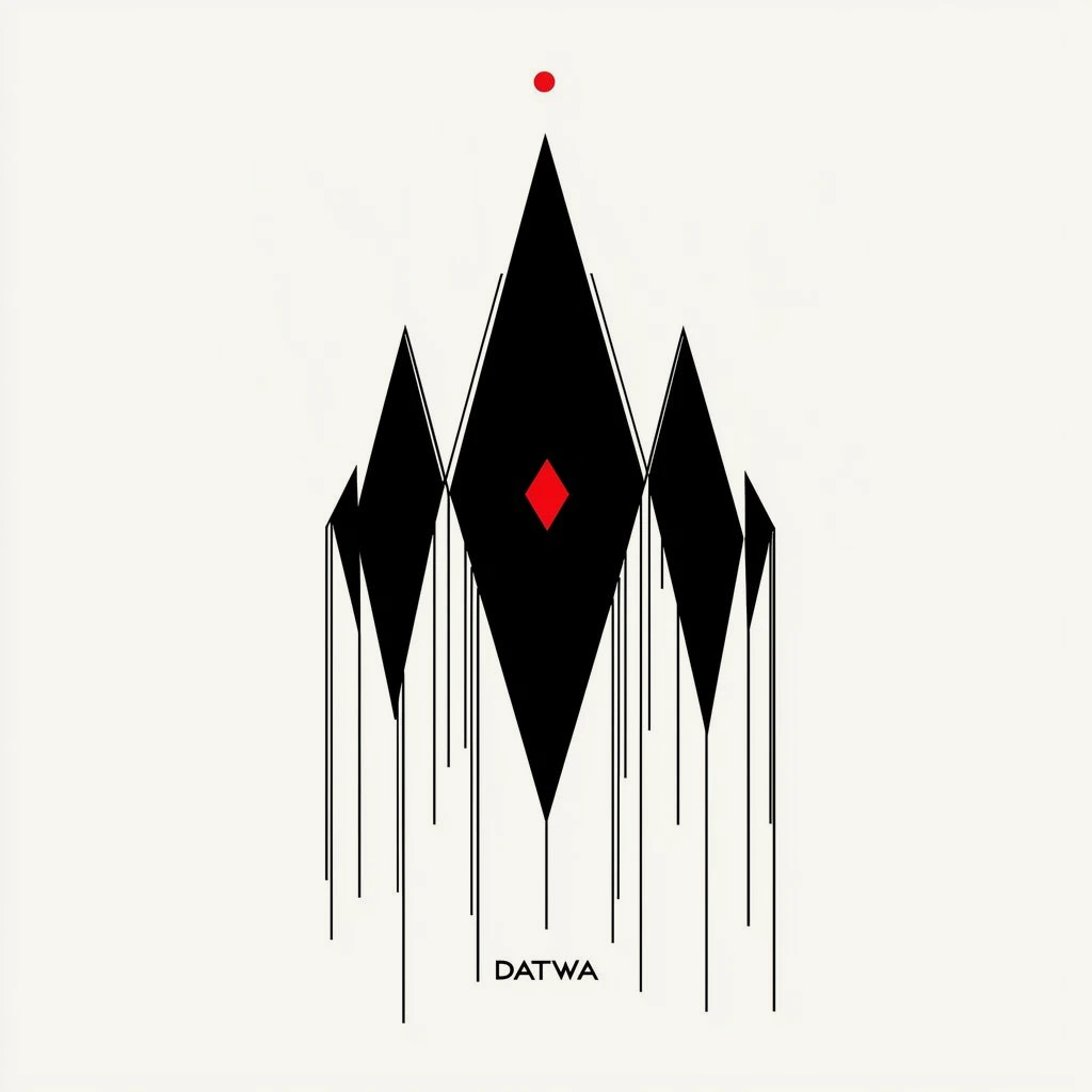 Single red diamond at the central intersection. DATWA letterspaced beneath in architectural sans-serif. The flagship mark.