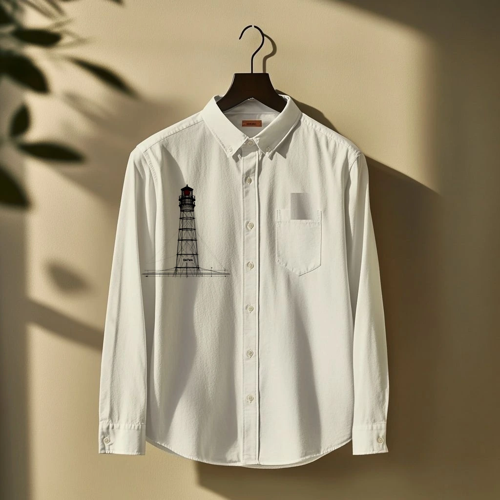 Single red diamond at the light. DATWA letterspaced along the base platform. Direction without compromise.