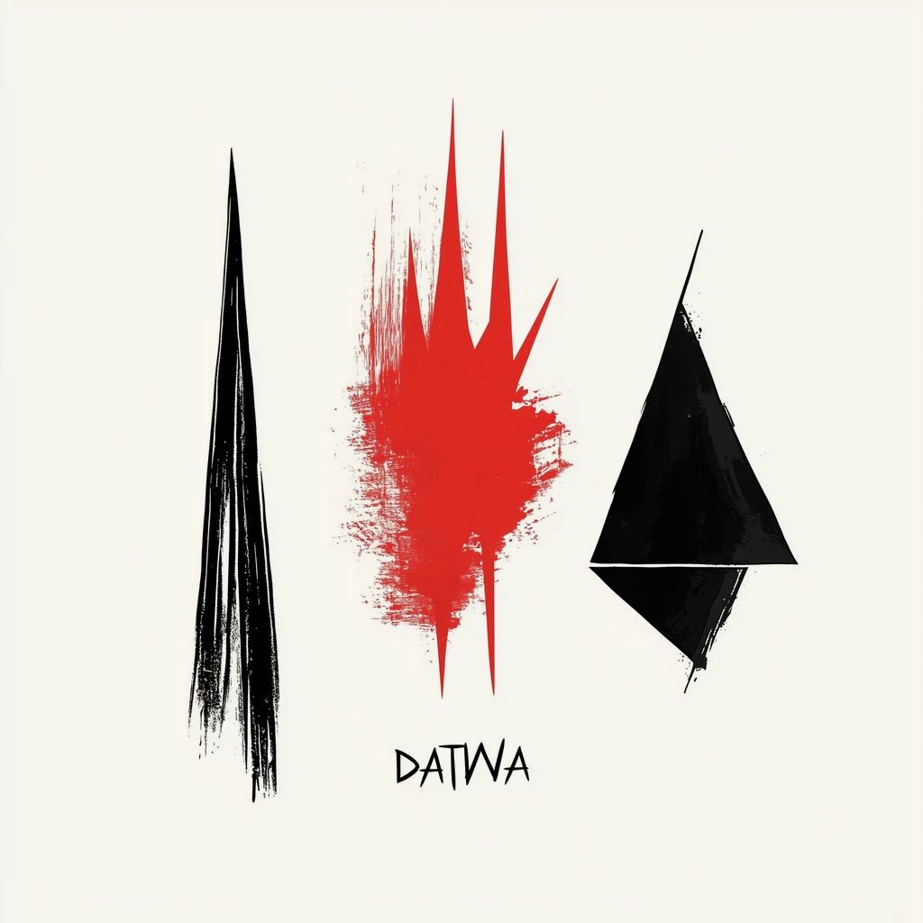 Single red brushstroke crown in the center — the only color. DATWA beneath in tracked architectural type. The mark beneath the mark.