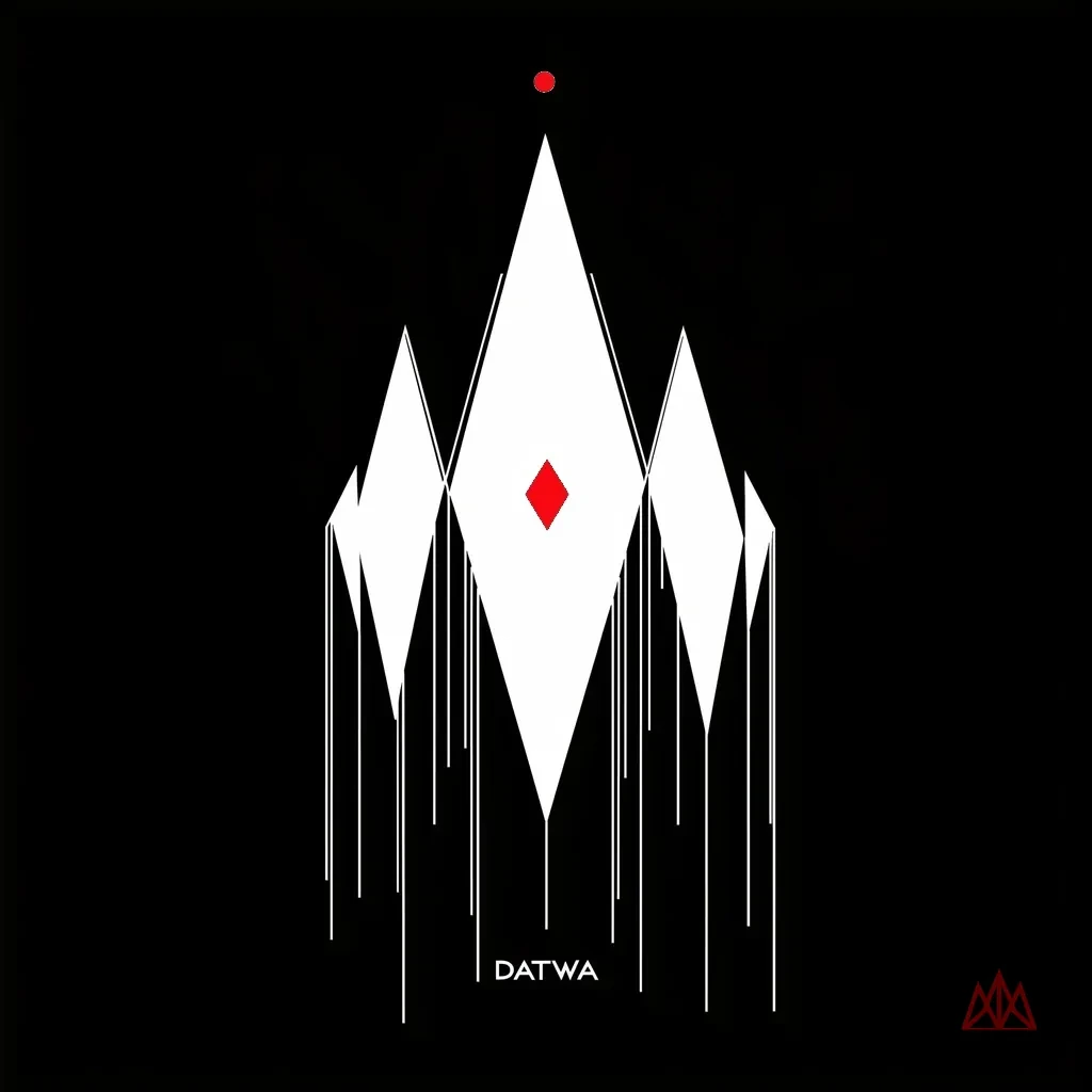 Single red diamond at the central intersection. DATWA letterspaced beneath in architectural sans-serif. The flagship mark.