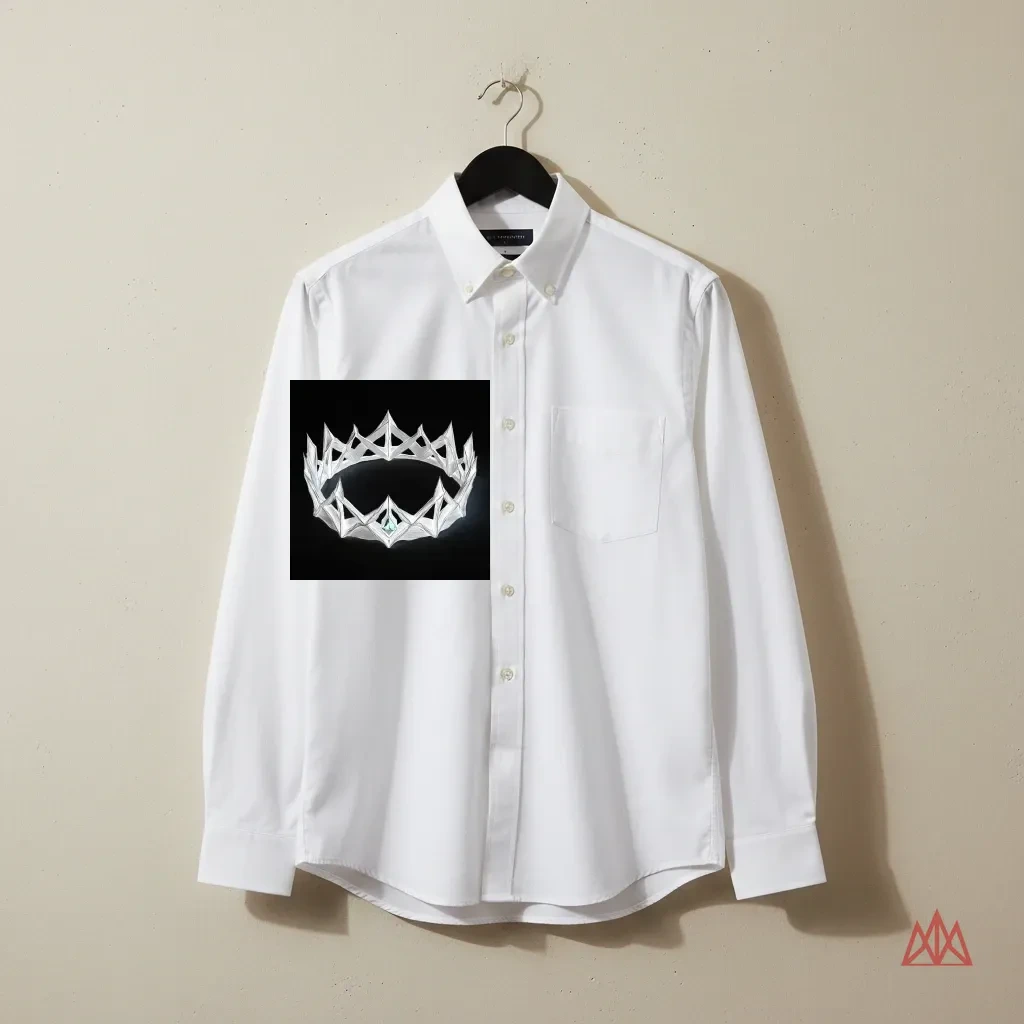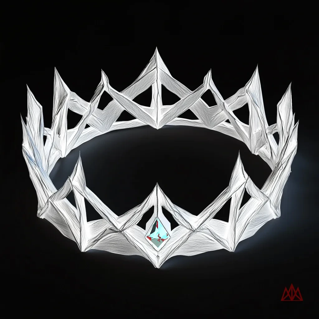 An iron crown rendered as angular wireframe. Hammered band with angular peaks and structural cross-members in precise black lines.